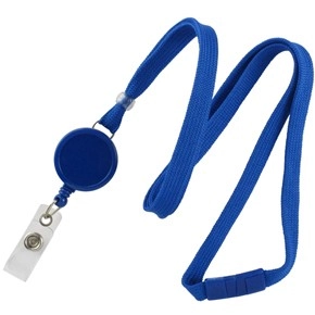Нейлоновый плоский разъемный шнурок различной расцветки с ретрактором и прозрачным виниловым ремешком с металлической кнопкой.