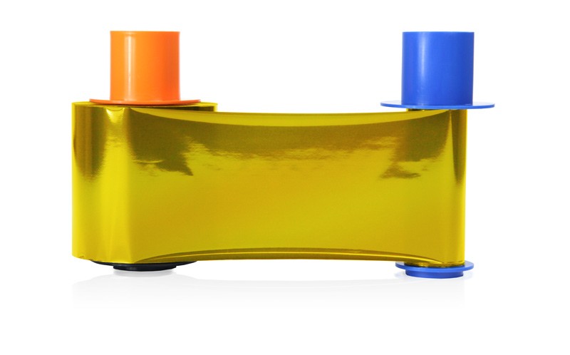 Печатная лента Fargo 45207 для всех принтеров Fargo серии DTC4500 и DTC4500e, печать «золотой металлик» на пластиковых картах и бейджах, 1000 отпечатков, внешний контроль положения и движения ленты в принтере, чистящий ролик.