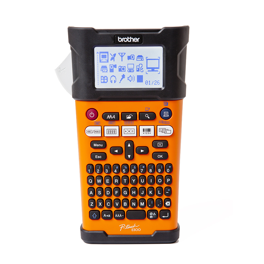 P-touch E300VP прост в использовании. Большой ЖК-дисплеей с подсветкой и клавиатура стиле ПК. Комплект включает в себя литий-ионный аккумулятор для бесперебойной печати наклеек. Прорезиненые края защищают принтер от ударов.
