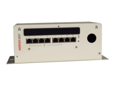 - DS-KAD606 — 8-портовый PoE-коммутатор с поддержкой 6-канального питания по PoE и 2-канального каскадирования LAN.