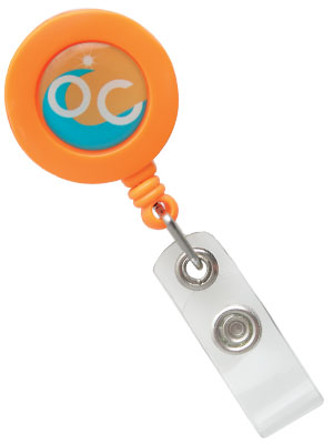 Круглый цветной брелок-ретрактор. Имеет виниловую полоску с кнопкой для крепления карты, а на задней стороне брелока расположен зажим для крепления его к одежде или ремню. Втягивающаяся струна работает по принципу "рулетки" и после использования карты притягивает ее обратно к брелоку, предотвращая потерю. Идеален для ношения пропусков, карт доступа.