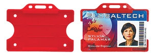 Открытый с лицевой стороны пластиковый бейдж имеет отверстия для крепления, клипсы, ленты, шнурка или цепочки. Возможно использовать только в горизонтальном формате.