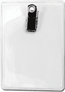 Изготовлен из более плотного материала, с уже прикрепленной клипсой, свободно вращающейся вокруг своей оси для удобства крепления к одежде.
