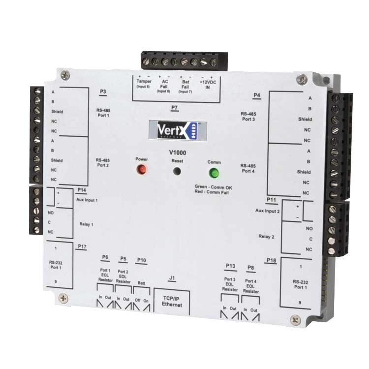Сетевой контроллер VertX V1000 построен на основе современного 32-х разрядного RISC процессора и использует операционную систему Linux. Программирование контроллера возможно с использованием WEB интерфейса. Контроллер обладает широким набором функций по управлению СКУД и ОС, а также другими системами безопасности и автоматизации. Подключение к компьютеру осуществляется по протоколу TCP/IP 10/100 Mbps Ethernet или Internet.