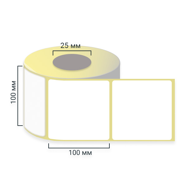 Самоклеящиеся термоэтикетки, рулон 100х100 мм, ЭКО, 1 ряд, 100 шт./р., втулка 25 мм