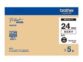 Лента HGE-651V5 (24 mm) черн/желт Высококачетвенные ленты Brother (5 шт), черный текст на желтом фоне. Ширина 24 мм, длина 8 м. В некоторых отраслях иногда требуется печать наклеек в больших количествах, в этом случае главное значение имеет высокая скорость печати. Наклейки HG разработанные по специальной технологи Brother увеличивают скорость печати до (40 мм/с). Высококачественная HG лента позволяет печатать с более высоким разрешением 360х720 т/д. Все защитные характеристики лент TZ сохранились в лента HG. К сожалению наклейки подходят только к профессиональным принтерам Brother (PT-9500PC, PT-9700PC, PT-9800PCN, PT-3600, PT-9600). Совместимы с PT-9500PC, PT-9700PC, PT-9800PCN, PT-3600, PT-9600