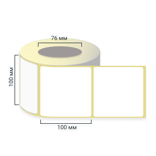 Термотрансферные этикетки 100х100 мм, полипропилен, 1000 шт./р., диаметр втулки 76 мм (2,9 дюйма)