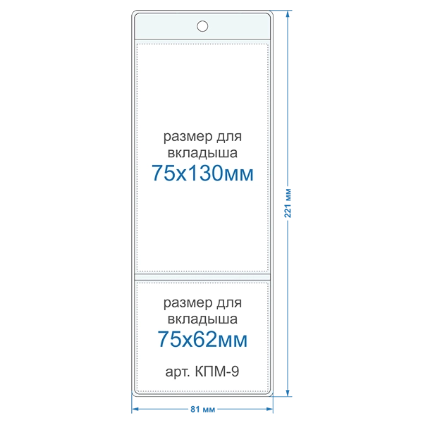 Внешний размер кармана: 81х221мм