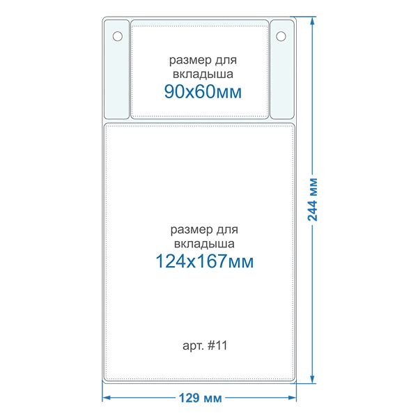 Внешний размер кармана: 129х244мм