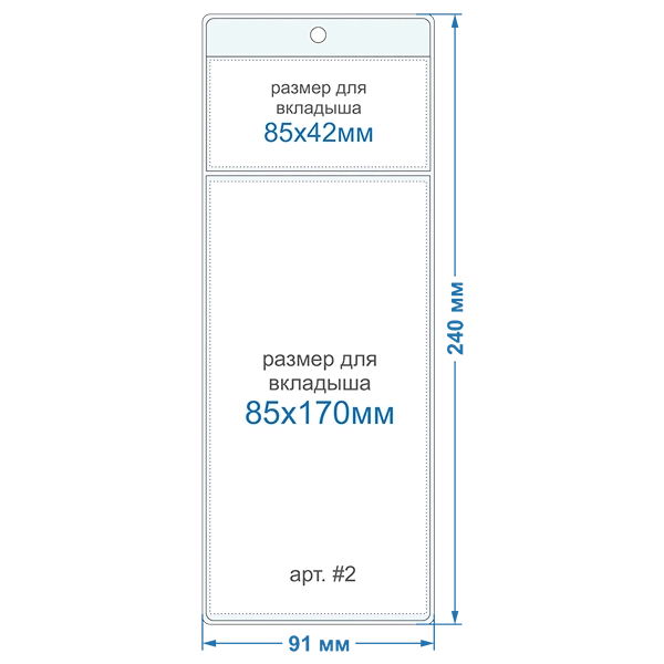 Внешний размер кармана: 91х240мм