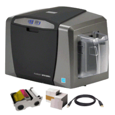 Комплект: Принтер-кодировщик HID FARGO DTC1250e SS. ОДНОсторонний. Базовая модель (NA) +Многоразовый картридж (EZ) c полноцветной печатной лентой YMCKO (250 отпечатков) и чистящим валиком; +Пластиковые карты UltraCard™ - 300 шт.; +Чистящие валики - 3 шт.; +USB кабель.