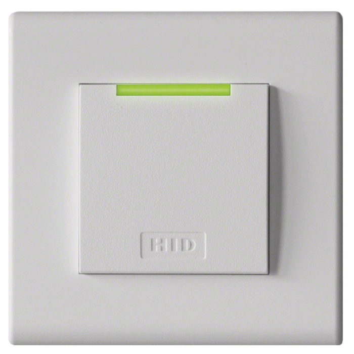 Компактный считыватель бесконтактных смарт-карт с SIO (HID iCLASS SE, MIFARE SE, MIFARE DESFire EV1 SE), меток и брелоков (HID iCLASS SE, MIFARE SE) для монтажа в стандартные подрозетники. Расстояние считывания: до 7.1 см. IP54, от -35°C до +65°C. Дизайн: белый, черный, светло-серый. Интерфейс: Wiegand. Клемная колодка.